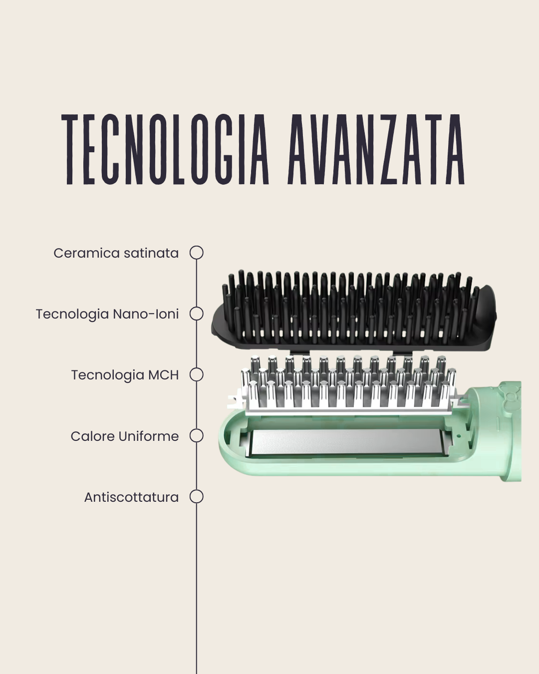 È dotata di tecnologia a nano-ioni che elimina il crespo e dona lucentezza ai capelli. Offre tre livelli di temperatura per adattarsi a ogni tipologia di capelli.